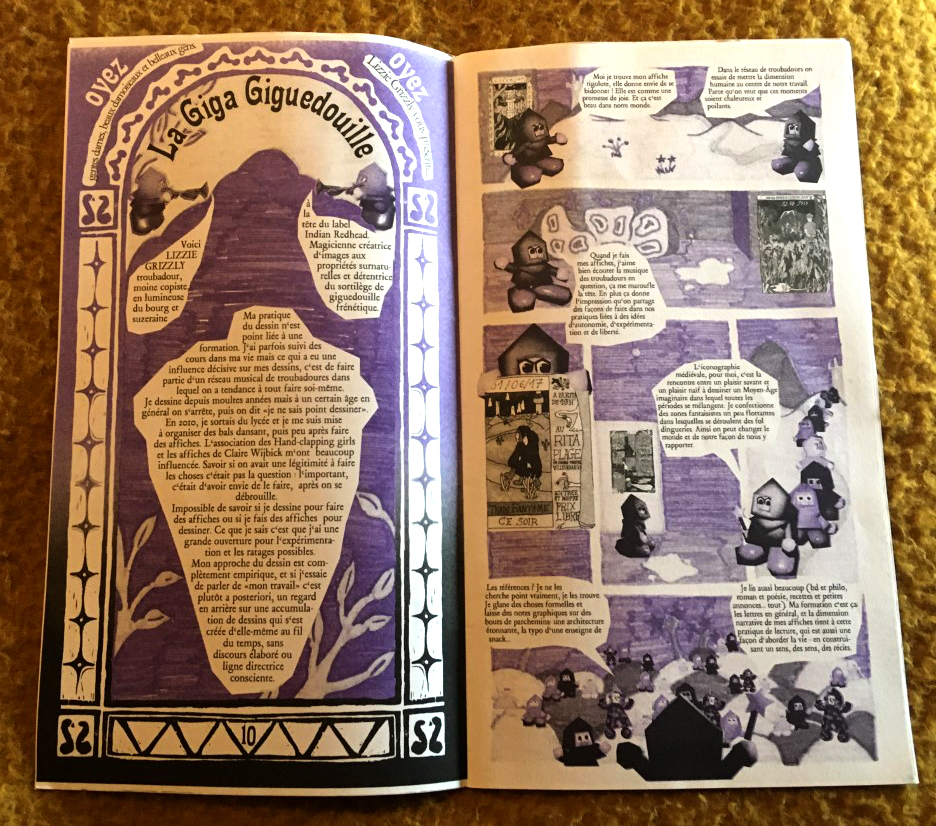 Comme tout le monde, je dessine depuis toujours - mais à un certain âge en général on s'arrête, et par la suite on dit "je ne sais pas dessiner". Pour moi la question ne s'est pas posée en ces termes. En 2010, je sortais du lycée et je me suis mise à organiser des concerts, et puis à peu près au même moment à faire des affiches, parce que j'étais entourée d'autres personnes qui fonctionnaient de cette façon (j'habitais à Clermont-Ferrand, où l'association des Hand-clapping girls et les affiches de