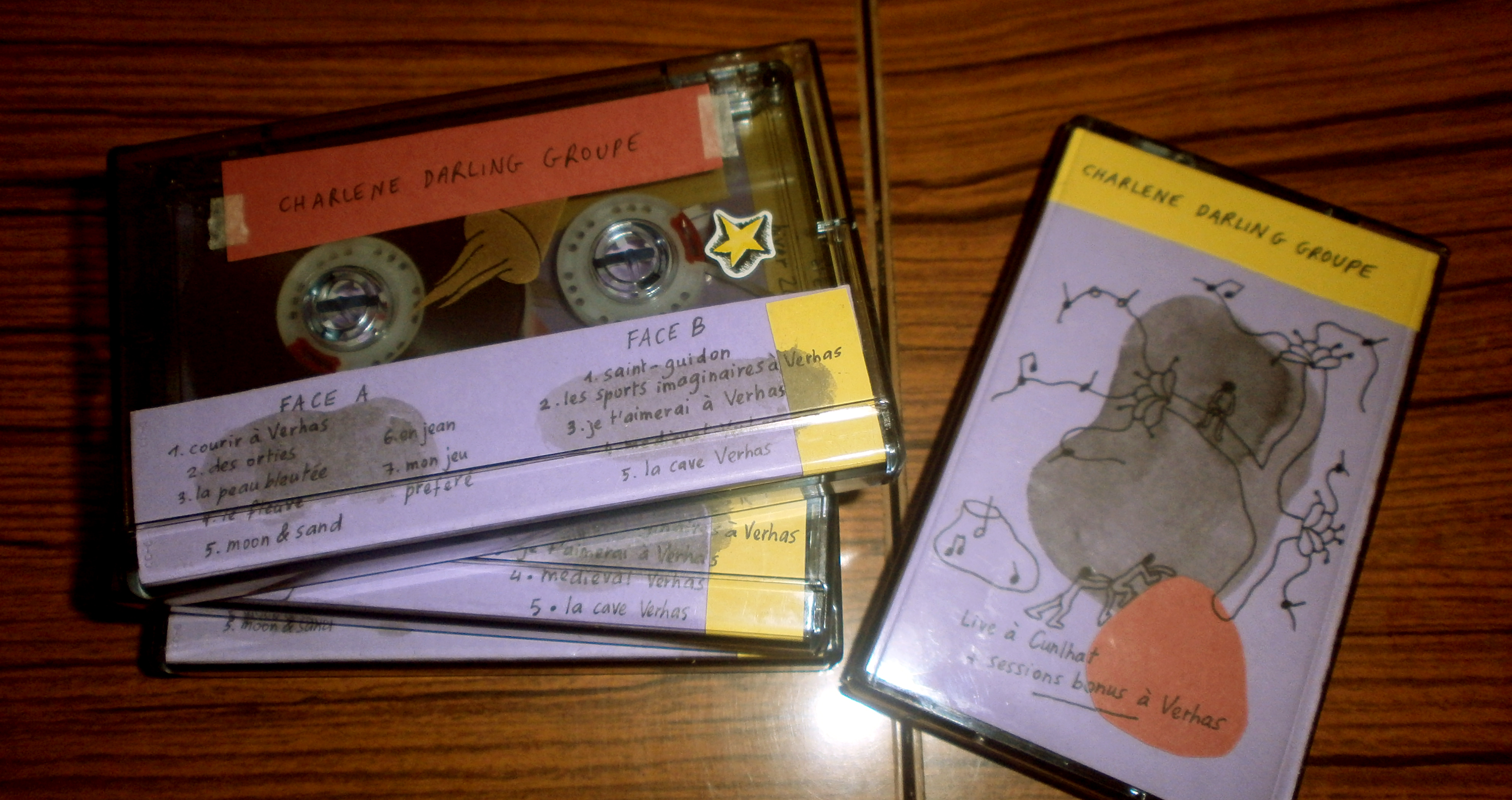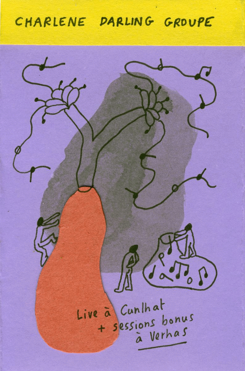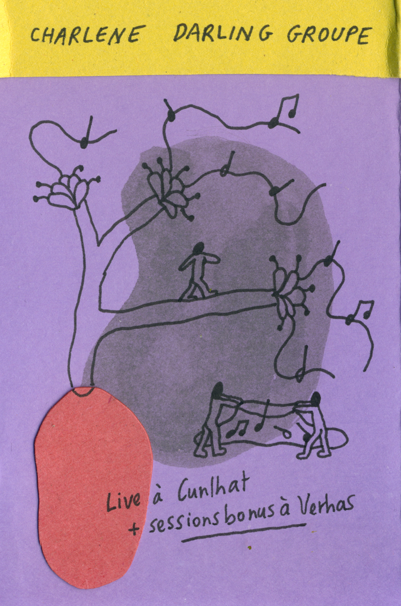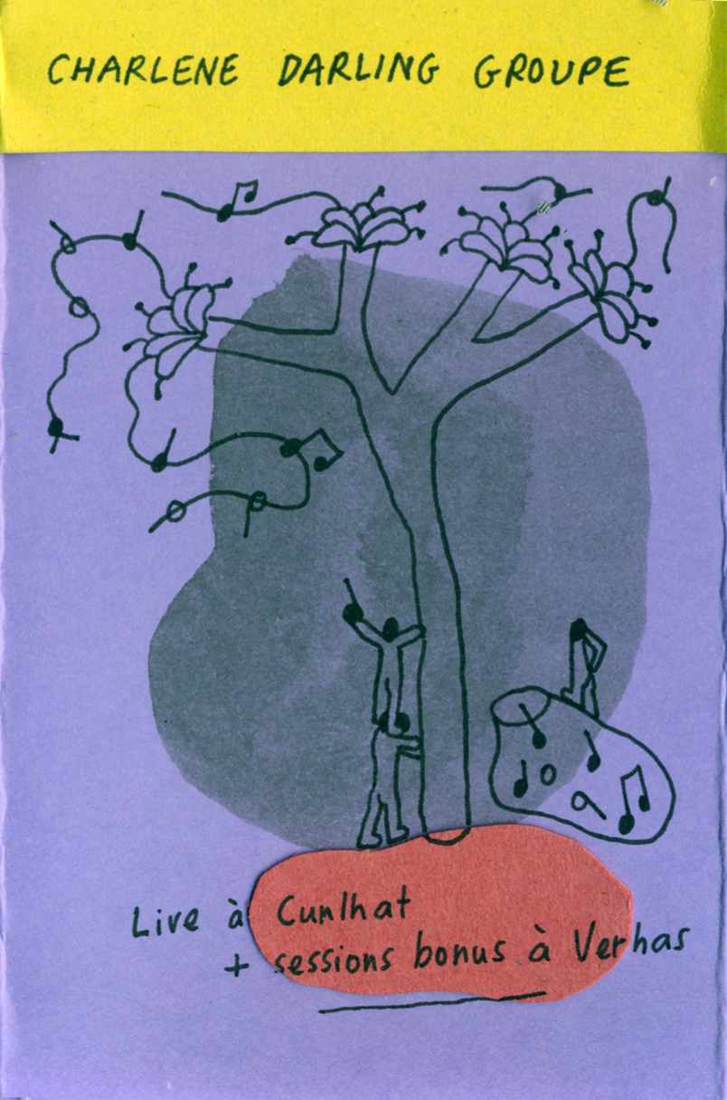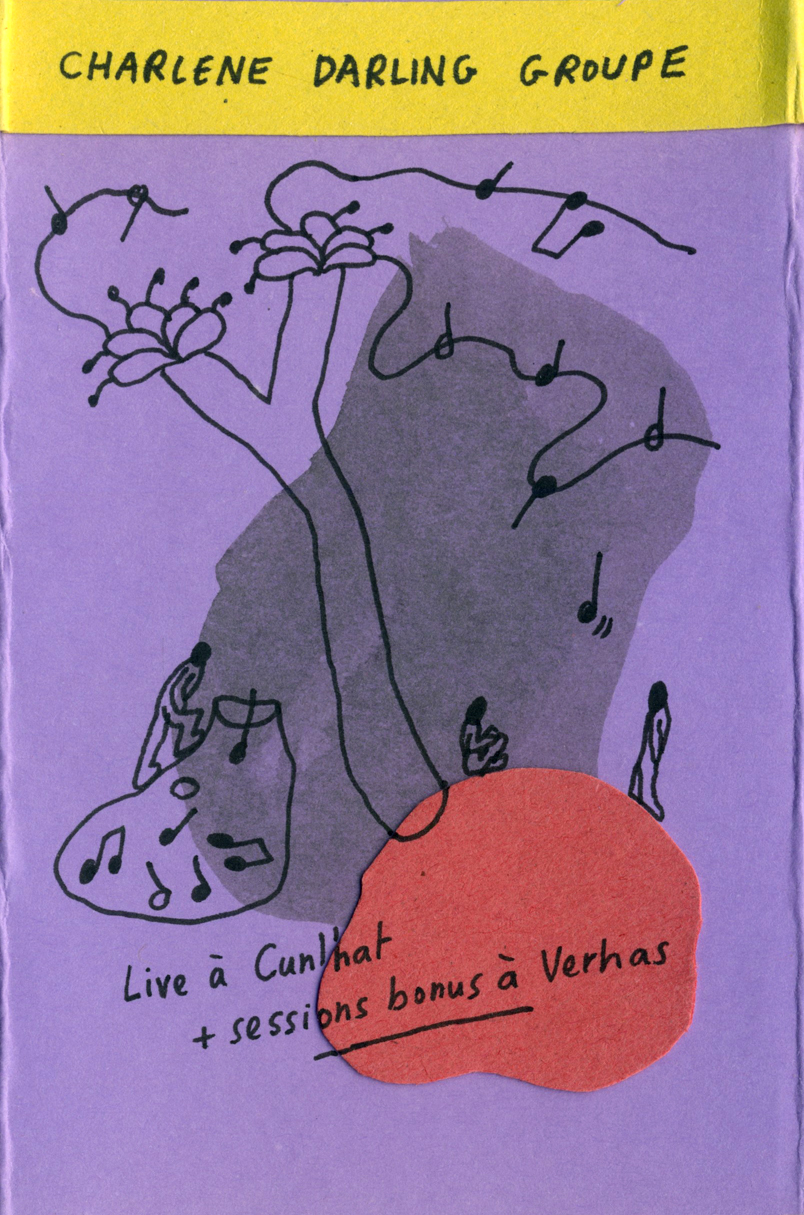 Visuels pour une cassette du Charlène Darling Groupe, Live à Cunlhat + sessions bonus à Verhas, sortie en décembre 2019.